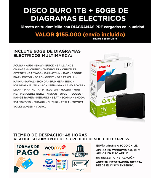 DISCO DURO EXTERNO 1TB TOSHIBA NUEVO + BASE DE DATOS 60GB DIAGRAMAS ELÉCTRICOS MULTIMARCAS